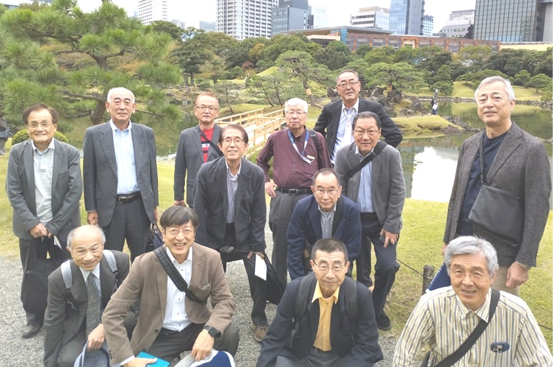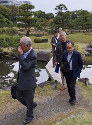 庭園の横を走る鉄道や浜松町駅、高層ビル群も視界に入り、新旧対照の光景も楽しみました。