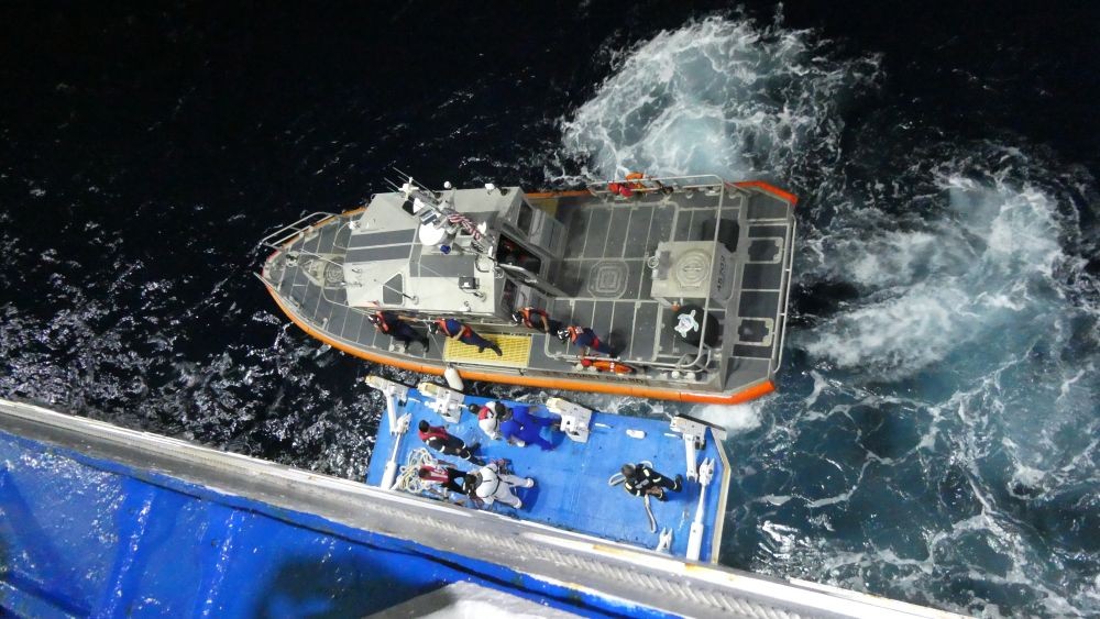 船はホノルル港に戻りますが、接岸せずにテンダーボートに急病人を引き渡します。横浜を出航してまだ10日余りで2件のメディカル搬送です。