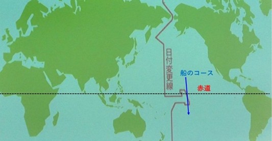 それはこの船が12月31日の夜明け前に一時的に日付変更線を越えて、1月1日になるからです。これは日付変更線が一直線ではなく、