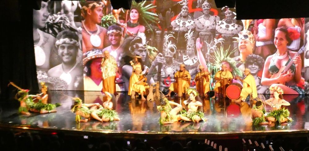 夕食前、船のシアターで本場もののポリネシアの音楽とダンスのステージがあります。