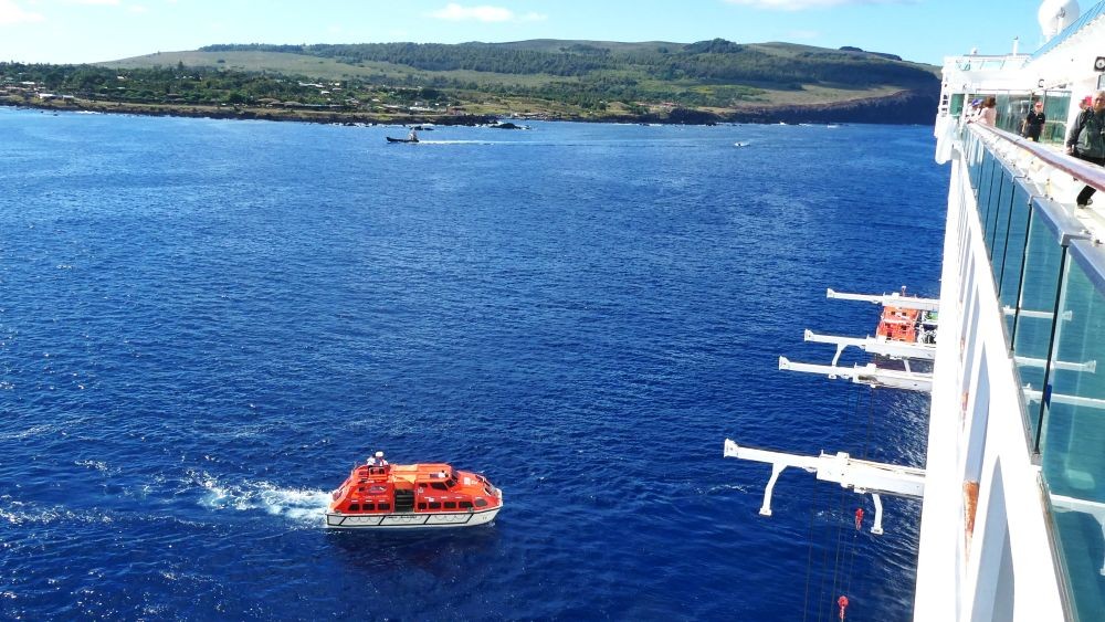 救命ボートをテンダーボート(通船)にして上陸をします。