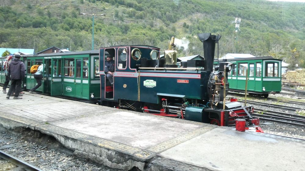 今ではその線路を活かして観光列車「世界の果て号」が運行しています。そして私たちはその列車に乗り込んでいきます。