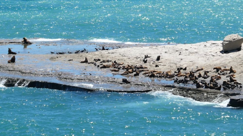 景勝地「プンタピラミデ」にやって来ると、昼寝をしているアザラシたちがたくさん出迎えてくれます。鳥も多く、海の色は青緑で実に美しい半島でした。