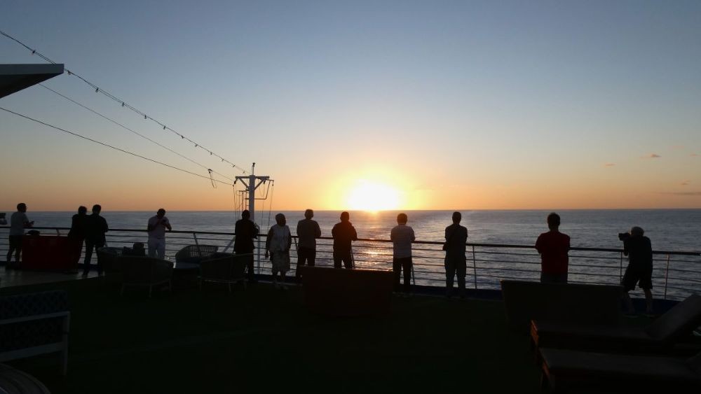 リオデジャネイロ港を出航しました。1時間程経った頃に船が港に戻るために転舵しました。