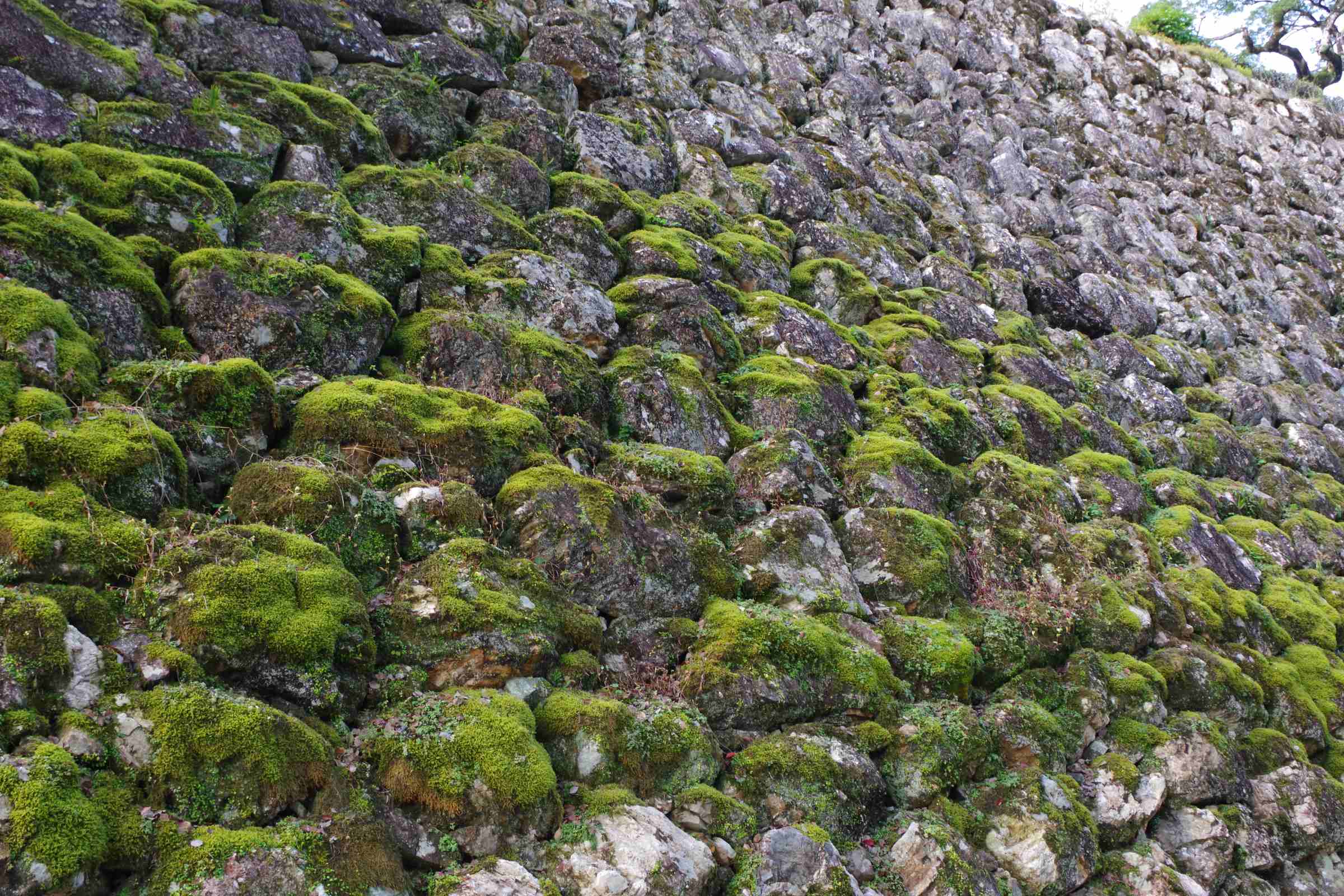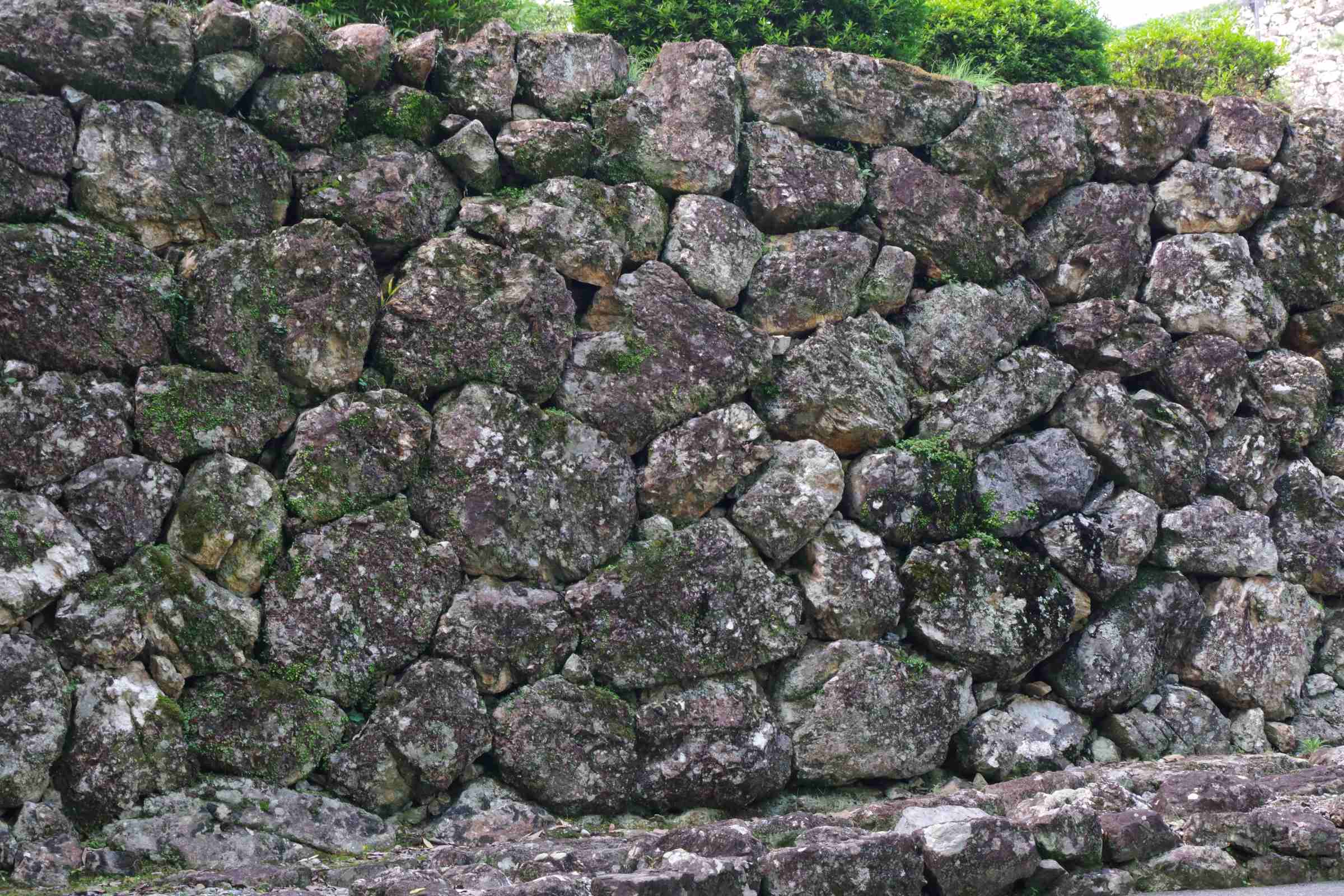 高知城石垣の大半は自然石をほとんど加工しないで積み重ねた野面(のづら)積みです。
